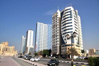 W jego połowie, od wejścia do portu, niegdyś ujścia rzeczki, później poszerzonego, pogłębionego i rozbudowanego, aż do granicy z Szardżą zabudowanym hotelami i budynkami biznesowymi oraz administracyjnymi.