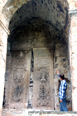 W dużej arkadowej wnęce dzwonnicy stoją dwie, wspaniale zachowane i bogato zdobione chaczkary, o rozmiarach 3 x 1 m. Najdalej na południe tego kompleksu, ale w odległości niewiele większej niż 2 metry od arkad narteksu świątyni Arzum Chatun, stoi niewielki kościółek ks. Hasana Wielkiego.