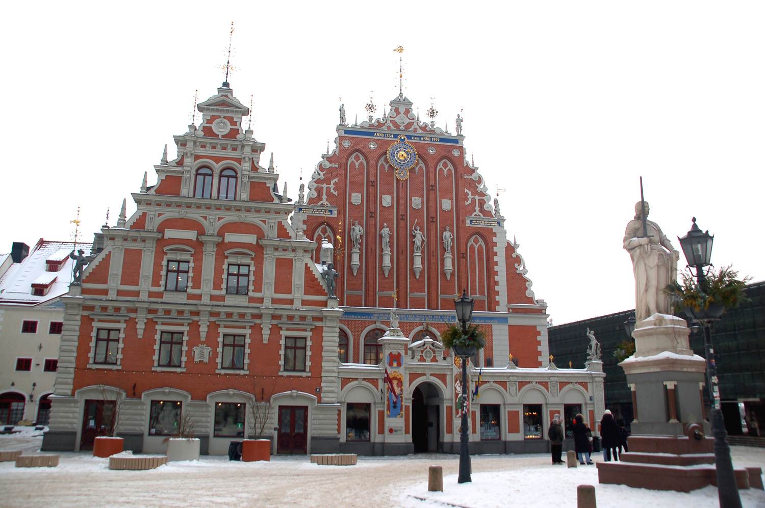 Oraz Brama Szwedzka (Zviedru vārti) – jedyna zachowana, z dawnych ośmiu oryginalnych bram wjazdowych do miasta. Tuż obok znajdują się dawne koszary Jakuba (Jēkaba kazarmas), przekształcone w ciąg restauracji oraz sklepów rzemieślniczych. Najpiękniejszą jednak, chyba nie tylko moim zdaniem, zabytkową budowlą Rygi jest Dom Bractwa Czarnogłowych (łot. Melngalvju nams), a właściwie ich para, bo dobudowany do niego jest Dom Wagi, stojące na Placu Ratuszowym vis a vis Ratusza. Ogromna większość podziwiających ich piękno turystów, zwłaszcza zagranicznych, nie zdaje sobie jednak sprawy, że jest to… replika.