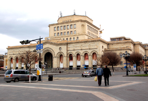 Jedną z najciekawszych budowli tego zespołu jest właśnie Muzeum Historii Armenii z fasadą z charakterystycznymi arkadami. Powstało ono w 1921 roku w oparciu o zbiory Kolegium Kaukaskiego, Ormiańskiego Towarzystwa Etnograficznego, starożytności z Nachiczewania, wykopalisk z Ani oraz ze stołecznego Erewania, który powstał przecież jako Erebuni, stolica króla Agriszti I już około 782 roku p.n.e. i innych kolekcji.