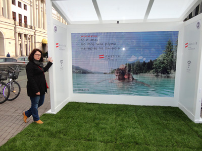 Pokazaniu, jak wiele jest tych atrakcji, służyć ma właśnie rozpoczynana kolejna akcja promocyjna w Polsce. Spotkanie prasowe nie zaczęło się w restauracji, lecz koło budynku Metropolitan u zbiegu ulic Focha i Trębackiej, na zapleczu Teatru Wielkiego. Stanął tam „austriacki przystanek”, w którym wyświetlane są piękne widoki różnych regionów i miejsc w Austrii. Z towarzyszeniem muzyki oraz informacji z głośników.