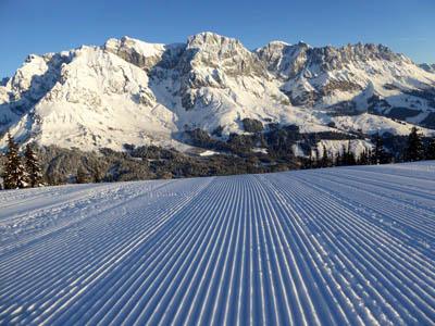 Wczesnym rankiem można kreślić pierwsze ślady również w Mühlbach am Hochkönig na Ziemi Salzburskiej. Na długo przed rozpoczęciem regularnego ruchu na górę wyrusza gondolka z pierwszymi narciarzami. Gdy szczyty masywu Hochkönig jaśnieją w promieniach wschodzącego słońca, puste jeszcze stoki należą wyłącznie do nich. Na świeżym śniegu jest też wystarczająco dużo miejsca dla początkujących.