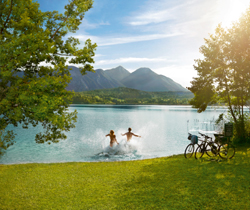 W Karyntii do zabawy w wodzie zapraszają liczne kąpieliska o temperaturze wody wynoszącej 28 stopni. Jednak również otoczenie błyszczących jezior obiecuje wiele. Podczas wypraw krajoznawczych rowerem można odkryć zapierające dech w piersiach punkty widokowe, zaciszne miejsca piknikowe i ukryte kąpieliska. Nad jeziorem Wörthersee poleca się trasę wokół pięciu jezior, prowadzącą od Velden przez jeziora Hafnersee, Keutschacher See, Bassgeigensee i Rauschelesee.