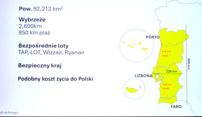 Przedstawicielka turystyki portugalskiej Visit Portugal omówiła atrakcje tego kraju, powtarzając to, o czym uczestnicy poprzedniego Roadshowu usłyszeli 9 dni wcześniej. Podkreślając długość portugalskiego wybrzeża – 2600 km i plaż – 850 km, bezpośrednie loty 4 liniami lotniczymi z Polski, tamtejsze bezpieczeństwo oraz ceny podobne do polskich.