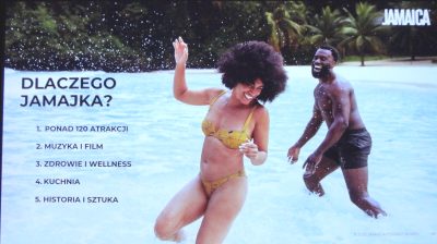 Bardzo ciekawie zaprezentowano Jamajkę, wyspę i państwo na Morzu Karaibskim oraz jego atrakcje przyciągające coraz liczniej zagranicznych turystów, w tym polskich. Odpowiadając na ekranie na pytania: Dlaczego Jamajka? – (jako kierunek wyjazdów urlopowych), pojawiły się odpowiedzi: 1. Ponad 120 atrakcji. 2. Muzyka i film. 3. Zdrowie i Wellnes. 4. Kuchnia. 5 Historia i sztuka. Nie zabrakło także informacji o szczególnie atrakcyjnych tam miejscach oraz planu lotów.