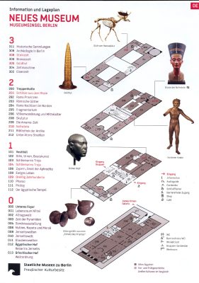 Umieszczono w nim, na czterech poziomach gmachu, eksponaty sztuki staroegipskiej, wraz ze słynnym popiersiem egipskiej królowej Nofretete (Nefretiti) z 1345 roku p.n.e., czyli zbiory Muzeum Egipskiego – Ägyptisches Museum oraz archeologiczne z czasów prehistorycznych, starożytnych i wczesnego średniowiecza – Museum für Vor- und Frühgeschichte. Znawcy polecają zobaczenie w nim przede wszystkim Popiersia Nefretete, Berlińskiej Zielonej Głowy, Berlińskiego Złotego Kapelusza i Kolekcję Papirusów. Niżej napiszę o nich nieco więcej.