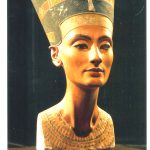 Na popiersiu Nefretete wyrzeźbionym w kamieniu i pomalowanym najprawdopodobniej przez rzeźbiarza Totmesa w roku 1345 p.n.e. przedstawiona została w nakryciu głowy przysługującym tylko faraonom. Odkryte zostało ono przez ekspedycję archeologiczną Ludwiga Borchardta w 1912 roku, ale publicznie pokazane dopiero w roku 1923. Parę słów warto poświęcić także Echnatonowi ze względu na jego rolę w historii starożytnego Egiptu i religii. Znany był pod czterema imionami, również jako Amenhotop IV, Amenophis, Achenaton, faraon z XVIII dynastii.