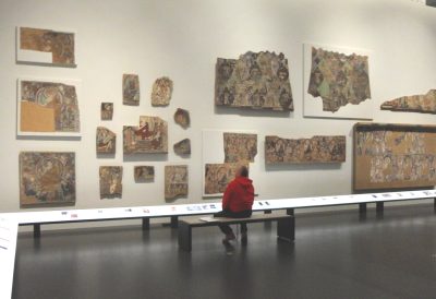 Kolejna stacja, to rekonstrukcja jaskini. Wejdź przez jedne z drzwi na złotej ścianie do pomieszczenia „Północny Jedwabny Szlak, Himalaje”…”. Cytując fragmenty muzealnego audio przewodnika w języku polskim dokonałem niezbędnych skrótów, rezygnując także z opisów niektórych eksponatów. Chodziło mi bowiem o zaprezentowanie jednej z możliwości zwiedzania tego muzeum. Moim zdaniem bardzo je wzbogacającą, zawierającą w krótkich formach sporo istotnych informacji nie tylko na temat oglądanych eksponatów. Każdy może jednak decydować sam, co i jak chce oglądać oraz z czym zapoznawać się.