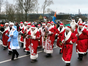 W jubileuszowym programie obchodów był przemarsz przybyłych ze wschodu gości białoruskiego Dziadka Mroza, przebierańców stylizowanych na bohaterów bajek i sympatyczne zwierzaki oraz przebraną za Św. Mikołaja (Dziadka Mroza?) orkiestrę dętą w czerwonych kaftanach i czapkach z pomponami.