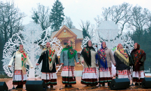 Na scenie rozstawionej na polanie przy ognisku występowały białoruskie zespoły regionalne oraz dziecięcy zespół taneczny dziewczynek przebranych za białe króliki. Dziesięć lat temu z polecenia Prezydenta Białorusi Aleksandra Łukaszenki na rozległej 15-hektarowej polanie we wschodniej części Puszczy Białowieskiej na miejscu dawnej zagrody hodowlanej żubrów powstała dziedzina Dziadka Mroza, który u naszych wschodnich sąsiadów zastąpił zbyt kojarzącego się z religią Świętego Mikołaja.
