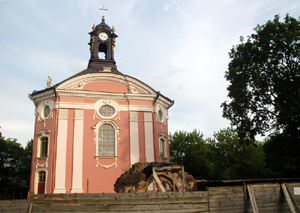 Tę budowlę o kształcie ośmiobocznej rotundy nakrytej spadzistym dachem, z niewielką wieżyczką zegarową na jego szczycie, zamieniono w latach 1866 – 1918 w cerkiew prawosławną. W latach międzywojennej stał się on ponownie świątynią katolicką, w której krypcie w 1938 r. pochowane zostały szczątki ostatniego polskiego króla. Usunięte bowiem zostały z miejsca ich pierwszego pochówku w kościele św. Katarzyny w Petersburgu (wówczas Leningradzie) i odesłane do Polski.