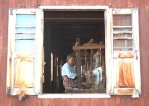 Fabryczka ta mieści się w dużym, drewnianym, piętrowym budynku z zardzewiałym blaszanym dachem. Dopływa się do niej, oczywiście, łodziami. W innych podobnych placówkach wytwarzane są niezliczone pamiątki. Figurki rzeźbione w drewnie, wyroby z tkanin, trochę metalu. To forma aktywizacji miejscowej ludności. Dosyć skuteczna, gdyż ludzi przyjeżdża tu sporo. Jest to bowiem dobrze wypromowana atrakcja turystyczna Birmy, sposób ograniczania skali nędzy.