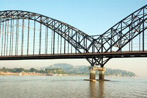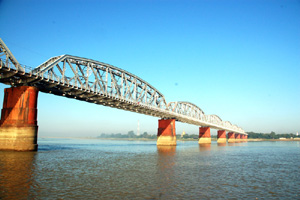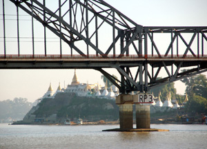 Ruch na wodzie jest spory, chociaż widziałem większy. Pływałem już po największych i najsłynniejszych rzekach świata. Amazonce, Nilu, Gangesie, Mekongu, przez górskie przełomy w Chinach, o europejskich drogach wodnych od Wołgi, Dniepru, Dniestru i Dunaju poprzez Ren i Sekwanę aż po portugalski Tag, nie wspominając. Tu mam nowe wrażenia na kolejnej, dużej azjatyckiej rzece.Przepływamy pod, chyba co najmniej dwukilometrowej – z poziomu wody niefachowym okiem nie jestem w stanie jej ocenić – długości żelaznym mostem Inwa Tada. Jeszcze niedawno był on jedynym na całej birmańskiej długości rzeki łączącym jej brzegi. Ale po kilkudziesięciu minutach mijamy kolejny, wyraźnie nowy, stojący na masywnych, ceglastego koloru betonowych podporach wbitych w dno.