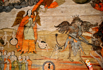 Poruszające realizmem i dosłownością przedstawione sceny stanowiły bowiem fragmenty „Biblii ubogich” – formę katechezy dla prostych, niepiśmiennych ludzi. Oglądamy więc m.in. miłosiernego Jezusa w otoczeniu apostołów, a pod nimi archanioła oraz diabła spychającego grzeszników do piekła, w którym cierpią oni męki. Czy scenę ścięcia św. Jana Chrzciciela itp.