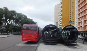 Autobusy miejskie kursują z dużą częstotliwością, mają swoje wydzielone pasy ruchu, obowiązują je inne przepisy ruchu niż pozostałe pojazdy. W celu usprawnienia i przyspieszenia obsługi pasażerów wybudowano specjalne przystanki. Podobnych na świecie nigdzie nie widziałem, są one jednym z symboli miasta. Mają one charakterystyczny kształty położonego walca, tuby. Rozdzielony jest w nich ruch pasażerów wsiadających i wysiadających, ich drogi się nie krzyżują. Bilet autobusowy kupuje się przy wejściu na terminal , u biletera. Jeden bilet upoważnia do kolejnych przesiadek, a do tego jest tani. Postój pojazdów na przystankach jest krótki, a jazda wydzielonymi pasami szybka. Na początku można mieć kłopoty w orientacji w tym jakże odmiennym systemie, ale gdy się zrozumie obowiązujące zasady jazda autobusami daje poczucie komfortu.