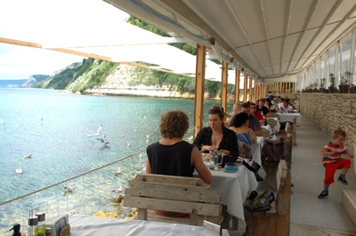 A w „farmowej”, położonej na wąskiej, długiej nadmorskiej półce skalnej, serwuje się nie tylko je, ale także inne owoce morza oraz potrawy i napoje. Po obiedzie mieliśmy możliwość zapoznania się z jedną z propozycji turystyki golfowej, na przykładzie ekskluzywnego ośrodka Thracian Cliffs (Trackie Klify).