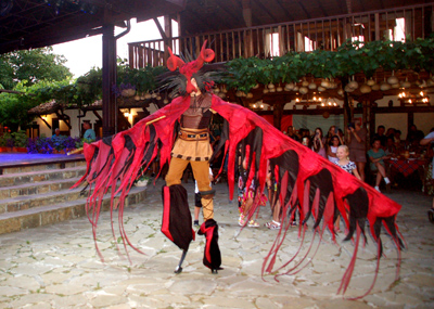 Widowisko było tak żywiołowe i barwne, że nam, fotografującym, nie starczało czasu na spożywanie podawanych posiłków zanim do reszty nie ostygły. Drugą częścią wieczoru, w innym miejscu tego ośrodka, zbudowanego chyba z pomocą pieniędzy z Unii Europejskiej, było Święta Ognia.