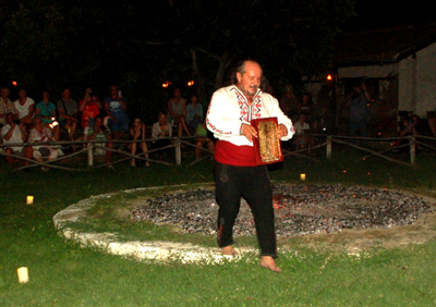 Przybyło na nią mnóstwo zagranicznych turystów, oprócz polskiego słychać było rosyjski, niemiecki, rumuński – w br. na urlopy do Bułgarii przyjeżdża sporo jej północnych sąsiadów – Rumunów i oczywiście bułgarski. Otrzymaliśmy stół najbliżej estrady, na której bułgarscy mistrzowie tańca prezentowali w skrócie, z komentarzami także w językach gości, ludowe tańce i obrzędy oraz różne okresy historii ziem bułgarskich.