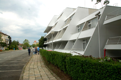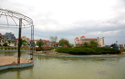 Na południe od niej stoją niewielkie domy miasteczka i niskie, głównie zaledwie 3-4 poziomowe hotele i pensjonaty. Wspomniany park miejski jest, poza plażami, główną atrakcją miasteczka i kurortu. Zajmuje on aż 20 ty. m² powierzchni, rosną w nim palmy i wiele różnorodnych drzew, krzewów i kwiatów. Jest świetnie utrzymany, nawet teraz, jeszcze przed szczytem sezonu, czynna jest fontanna, place zabaw dla dzieci.