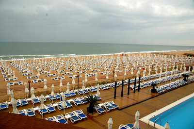 Tutejsze plaże, czyste i dobrze utrzymane, uważane za jedne z najlepszych w kraju, dzielą się na 3 części: Batareyata. Centralna i Irakli – do niedawna jeszcze zupełnie dziką, podzielone są na sektory z których każdy, zwłaszcza przy hotelach „pierwszej linii”, wyposażony jest w leżaki lub plastikowe leżanki, wiele z parasolami, na razie, gdy je oglądam przed sezonem, zwiniętymi.