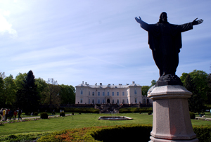Przed pałacem stoi rzeźba Chrystusa dłuta Berthela Thorwaldsena, twórcy warszawskich pomników Kopernika i księcia Józefa Poniatowskiego.