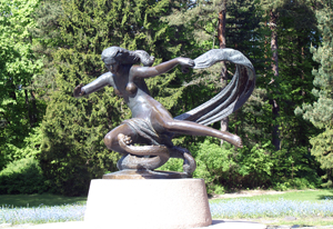 W parku na Górze Biruty stała świątynia w której płonął wieczny ogień, a jedną z kapłanek, Birutę, porwał do Trok książę Kiejstut (potem została matką Wielkiego Księcia Witolda). Stoi tu też rzeźba Jurate i Kastytisa. Jurate, bogini morza mieszkała w pałacu z bursztynu na dnie morskim. Zabierała tam swego ukochanego Kastytisa, rybaka. Jej ojciec Perkunas zniszczył zamek i utopił rybaka, a fale do dzisiaj wyrzucają na brzeg kawałki bursztynowego pałacu.