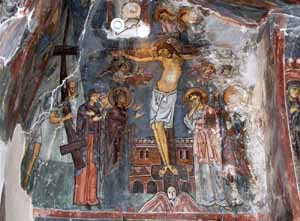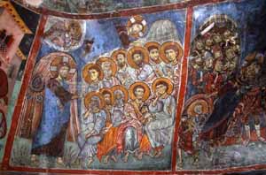 Należą one do najcenniejszych malowideł bizantyjskich z XII – XV w. na Cyprze. Sceny przedstawiają ostatnie dni życia Jezusa. Nauczającego, z apostołami, Ostatniej Wieczerzy, zdrady Judasza, na sądzie przed Piłatem, w drodze na Golgotę, Ukrzyżowanie. A także kilka jego wizerunków, wśród nich duży Pankratora – Władcy Świata, namalowany w kręgu na niskim, ukośnym stropie.Ponadto Maryi z apostołami i kilka innych scen oraz postaci świętych. Oglądając je warto pamiętać, że treść tego malarstwa musiała docierać w czasach gdy ono powstawało, przede wszystkim do niepiśmiennych wiernych. Była więc pewnego rodzaju komiksem przedstawiającym najważniejsze sceny z Nowego Testamentu.