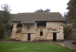 Jednym z nich jest – figuruje na Liście UNESCO – bizantyjska świątynia o trochę zaskakującej nazwie: Agios Nikolaos tis Stegis – Świętego Mikołaja od Dachu. Stojąca w górach, ponad 3 km od Kakopetrii, pozostałość po dawnym klasztorze. Otoczona płotem z siatki, od strony drogi z bramą bardziej kojarząca się z… wejściem na działkę.