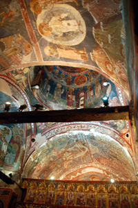 Stanowiącą, jak już wspomniałem, fragment nieistniejącego już klasztoru. W XII w. dobudowano do niej przedsionek i niewidoczną obecnie z zewnątrz kopułę. A wnętrze przez ponad 6 wieków pokrywano freskami. Wystarczy przekroczyć drzwi tej świątyni, aby znaleźć się w niezwykłym świecie.