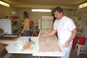 Najpierw mistrz rozwałkowywał, podobnie jak na pierogi, wcześniej przygotowane ciasto. Następnie wykrawał z nich krążki, które jego pomocnica smarowała tłuszczem lub miodem, rozkładała na blachach, a po krótkim pieczeniu wkładała, przed ostatecznym etapem produkcyjnym, do specjalnych metalowych rożków nadając im właściwy smak.