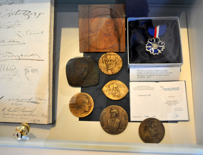 Obejrzeć można m.in. różne medale chopinowskie, stare programy i wydawnictwa, plakietki, rzeźbę – popiersie Chopina itd. Jak również niektóre utwory kompozytora, a ściślej ich kopie. M.in. pieśni „Pierścień” skomponowanej dla Marii Wodzińskiej oraz poświęcony jej walczyk cis moll op. 64 nr 2 i wiele innych.