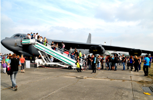 Długie kolejki chętnych do wejścia na wysoki trap, aby móc z niego zajrzeć z zewnątrz do kabiny pilotów, ustawiają się do legendarnej amerykańskiej „superfortecy” Boeinga B-52 Stratofortress o numerze 1008.
