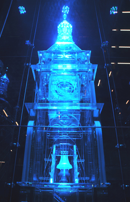 W najniższej, wcześniej niedostępnej części wieży, ustawiono podczas ostatniego remontu jej 2,6 – metrowej wysokości szklany, podświetlony na zielono model w skali 1:20 i o wadze jednej tony. Pozwala to zwiedzającym dokładnie zobaczyć konstrukcję i detale jej dziesięciu pięter z dzwonem i zegarem.