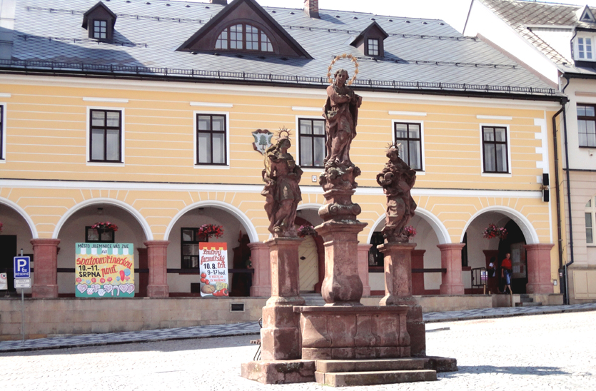 Zabytkowy jest też barokowy budynek zarządu dóbr Harrachów z początku XVIII w., empirowa plebania oraz neorenesansowy gmach byłej szkoły żeńskiej. Warto wspomnieć o jeszcze jednej tutejszej ciekawostce, której poświecono nawet osobną tablicę informacyjną „Immaculata” w trzech językach. Jest to historia rzeźby Františka Trojana z roku 1899 „Niepokalana Panna Maria”.