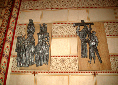 Za kratą umieszczono w niej dużą, piękną, gotycką płaskorzeźbę z około roku 1483, przeniesioną ze zburzonego kościoła NMP na Podgrodziu. A także mniejsze figury świętych Piotra i Pawła z również rozebranego kościoła św. Piotra, także na Podgrodziu. Są to co prawda tylko kopie oryginałów przeniesionych w 2 połowie XIX w do katedry, ale warte zobaczenia.