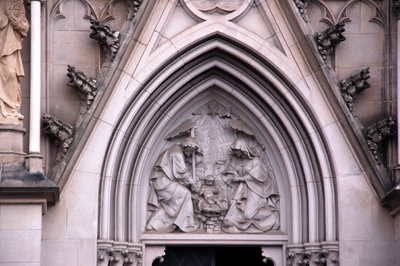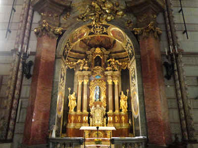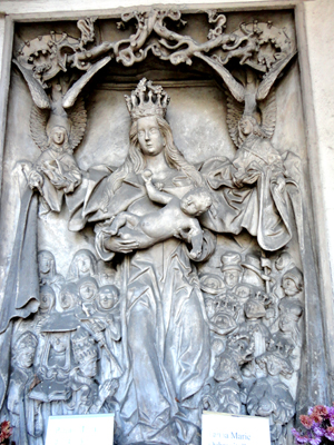 Jest na tutejszym Václavském námesti jeszcze jeden obiekt godny uwagi, chociaż dosyć niepozorny i można go przegapić. To także już wspomniana kaplica Marii Panny Opiekunki, zbudowana w roku 1860 w narożniku muru południowej części placu i odchodzącej od niego w dół ulicy Dómskiej, czyli Katedralnej.
