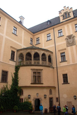 Na drugiej trasie – salony północnego skrzydła pałacu – są zachowane jego oryginalne fragmenty z okresu gotyku i renesansu. M. in. kaplica św. Huberta, wspomniana Zbrojownia, apartamenty prywatne następcy tronu itp. Trzecia trasa prowadzi przez apartamenty prywatne rodziny arcyksięcia, też bogato wyposażone w oryginalne meble i dzieła sztuki.