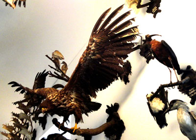 Ale eksponowane w takiej skali poroża, skóry oraz wypchane zwierzęta i ptaki, chyba nie tylko na mnie robią ponure wrażenie. Kojarzą mi się bowiem ze słynnymi kaplicami czaszek czy ludzkich piszczeli, których widziałem kilka. Tylko szczątki ludzi w nich są ich pozostałościami po epidemiach, wojnach, nierzadko naturalnej śmierci. Nie zaś „trofeami” z zamordowanych zwierząt.