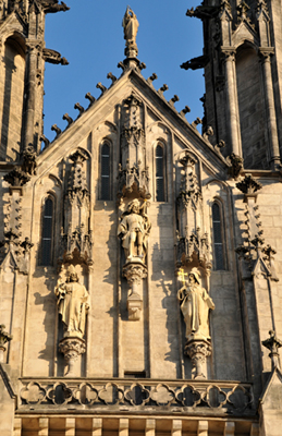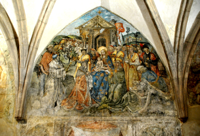 Po pożarach w XIII i XIV wiekach została ona odbudowana, już w stylu gotyckim, jako trójnawowa świątynia halowa. Później dobudowano do niej po południowej, czyli prawej stronie licząc od frontu, renesansową kaplicę św. Stanisława. Mamy więc kolejny związek tego miejsca z Polską – wezwanie naszego świętego Stanisława ze Szczepanowa.
