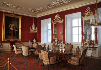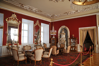 Zabytkowe meble, wyposażenie oraz mnóstwo cennych malowideł ściennych i obrazów, rzeźb i figurek, lichtarzy, zegarów, pieców, itp. A także sal i pokojów – od wielkiej sali konferencyjnej, poprzez jadalnie, gabinety itp. po sypialnie. W pałacu tym w ciągu kilku już wieków wielokrotnie gościli władcy i inne wybitne osobistości.
