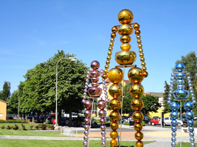 A przede wszystkim wielkie szklane rzeźby wykonane przez jednego z najwybitniejszych czeskich artystów tworzących w tym tworzywie, urodzonego w 1943 roku Jiřiho Šuhájka. Są to „Jesień” i „Zima” z cyklu „Pory roku” wykonane w 1998 r. na Międzynarodowe Biennale Szkła w Wenecji.