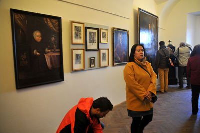 W muzeum oglądam również liczne obrazy oraz rzeźby dawnych właścicieli, stare sztychy przedstawiające Kuks przed powodzią i inne eksponaty. Trochę makabryczny zestaw stanowi, wspomniana już, czaszka matki fundatora tego zespołu umieszczona w czarnym, drewnianym, przeszklonym meblu z krzyżem na wierzchu.