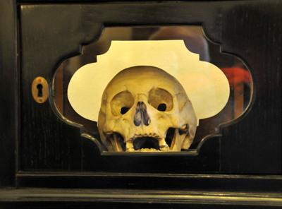 Gdy jednak nie uzyskał na to zgody ze względów sanitarnych, zabrał tylko jej odkażoną czaszkę. Stała się ona jego relikwią przechowywaną w pozłacanej szkatule, do której modlił się codziennie. Obecnie wystawioną na widok publiczny w muzeum, do czego jeszcze wrócę.