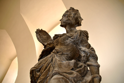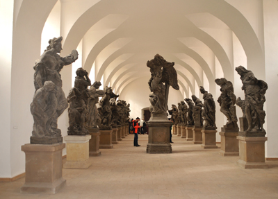 Zastąpiono je wiernymi kopiami, a oryginały, ze względu na niszczący wpływ na piaskowiec wilgoci oraz różnice temperatur, przeniesiono do galerii w dawnej głównej sali szpitalnej. Hrabia stworzył też ogromną bibliotekę około 40 tys. dzieł. Z których wiele, jako „bluźnierczych”, została skonfiskowana, a nawet spalona przez funkcjonariuszy Kościoła katolickiego.