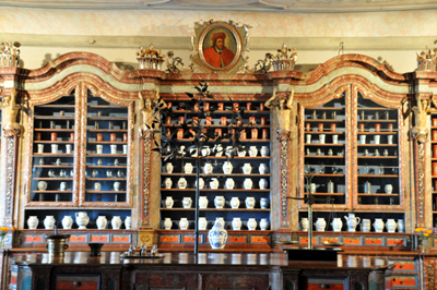 Leki wytwarzano głównie na miejscu, zachowały się więc liczne moździerze z brązu, również oryginalne wagi itp. W trakcie przeprowadzonej niedawno, wspomnianej rewaloryzacji, odzyskały one dawny blask. Podobnie jak piękne malowidła stropowe.