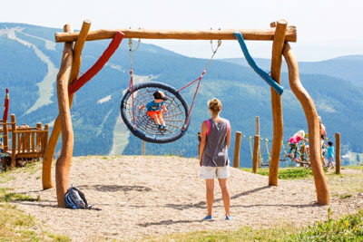 Szpindlerowy Młyn w Karkonoszach, znany w Polsce przede wszystkim jako ośrodek zimowy, atrakcyjny jest również w pozostałych porach roku. Teraz, w lecie, zaprasza dzieci i dorosłych na niezwykłe place zabaw ulokowane na górskich stokach. Na amatorów aktywnego wypoczynku czekają tam ścieżki edukacyjne, terenowe hulajnogi i trójkołowce, trampoliny czy samochodziki buggy. Najwyżej położony plac zabaw w Czechach znajduje się na wysokości 1235 m n.p.m. Rozciąga się stąamtd przepiękny widok na okolicę. Dzieci mają do dyspozycji mnóstwo atrakcji – między innymi drabinki, zjeżdżalnie czy ścianki wspinaczkowe.