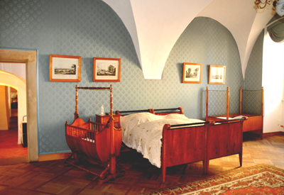 Wewnątrz, w kilku parterowych pokojach, znajduje się ekspozycja mebli – wśród nich fortepian i biureczko, a także wyposażenie sypialni z kołyską, gabinetu oraz kolekcja porcelany. Ciekawostkę stanowi stara, zdobiona tarcza strzelecka. Były one bardzo popularne w Czechach, zwłaszcza w XVII – XVIII w.
