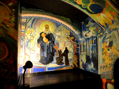 W pomieszczeniach na górnym poziomie świątyni, do którego wchodzi się po krętych, drewnianych schodach, znajduje się ekspozycja „Anioły w niebie”.