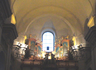 Wspomnę tylko, że w ołtarzu głównym znajduje się, namalowana w 1778 r. przez profesora wiedeńskiej Akademii Sztuki Vincenze Fischera kopia obrazu pędzla znakomitego włoskiego malarza Francesca Trevisaniego. Oryginał, niestety, spłonął w pożarze.