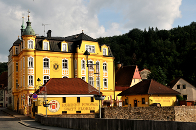 A ponieważ nic się nie zmieniło, co miałem okazję stwierdzić będąc tu ponownie ostatnio, więc nie zamierzam się powtarzać. Po raz pierwszy miałem natomiast okazję poznać kolejną tutejszą atrakcję. Stary browar św. Floriana stojący tuż za mostem nad Ohrzą, przy wjeździe do miasteczka i u stóp zamku.